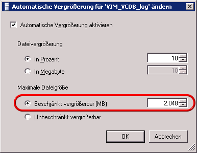 Und wie wir in dem umrandeten Feld sehen könnt, darf die Datei nicht größer als 500MByte werden. War bei mir z.B. b ei vielen schnellen Aktionen hintereinander (AVVI Backups) zu wenig.