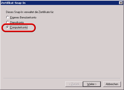 Für das Computerkonto (Zertifikat gilt für alle Benutzer an diesem Computer!)