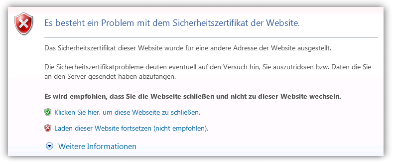 Diese Medlung bekommt man weg wenn man das Zertifikat zu den "Vertrauenswürden Stammzertifizierungsstellen" hinzufügt.