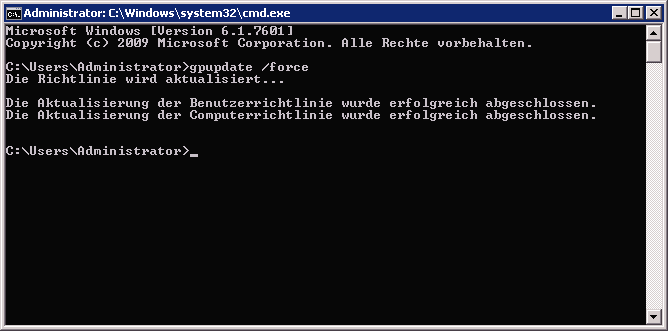 Auf einem Client schnell die Gruppenrichtlinien aktualisieren mit: