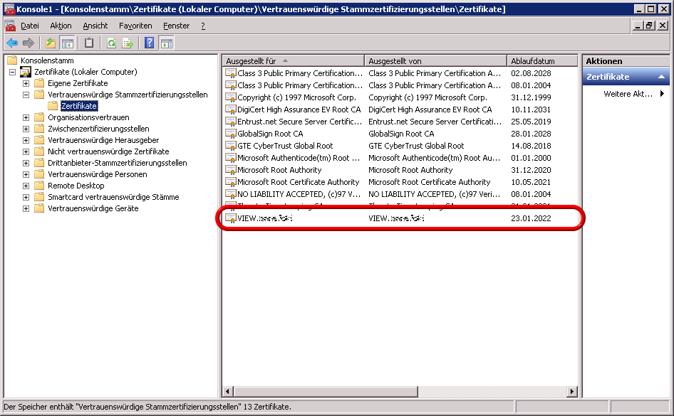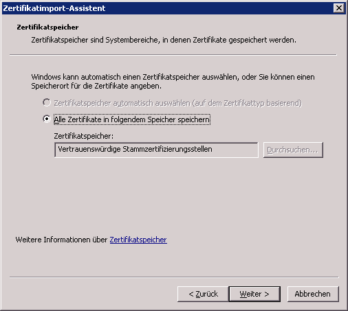 +-> Vertrauenswürdige Stammzertifizierungsstellen