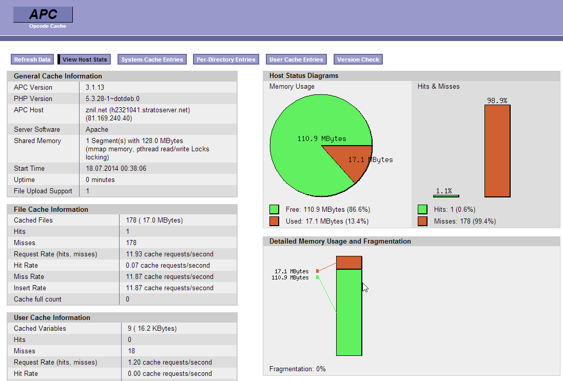 Nun könnt Ihr im Webbrowser euch die Status-Webseite zu APC Cache ansehen: