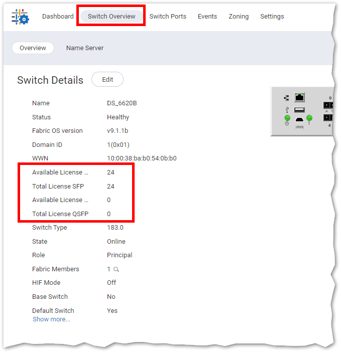 0 SFP-based ports are assigned to the base switch allowance or installed licenses: