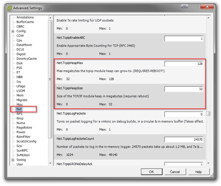 Net - Net.TcpipHeapSize Net - Net.TcpipHeapMax