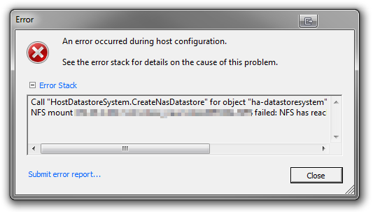 Beim hinzufügen von NFS-Shares gab es folgende Fehlermeldung: