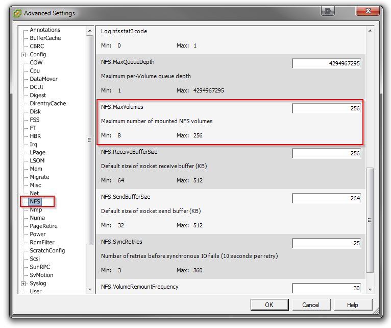 NFS - NFS.MaxVolumes