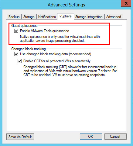 Auch in anderen Backup-Programmen müsst Ihr diese Einstellung in der Regel explizit aktivieren, bei Veeam zum Beispiel in den Advanced Einstellungen eines Jobs unter Storage: