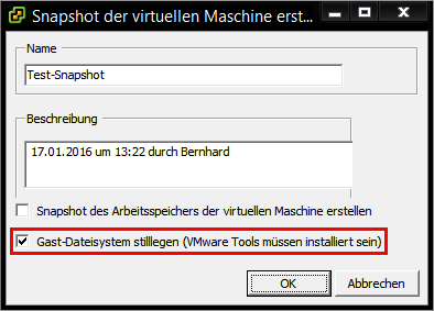 wird durch die VMware Tools direkt nach der Erstellung des Snapshots ausgeführt.