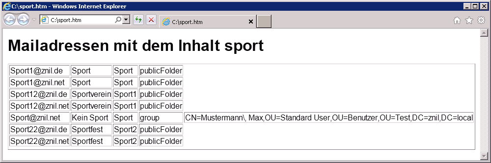 & "<p>Die Suche nach Mailadressen mit dem Inhalt " _