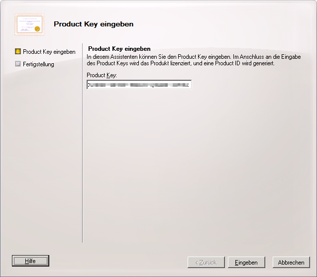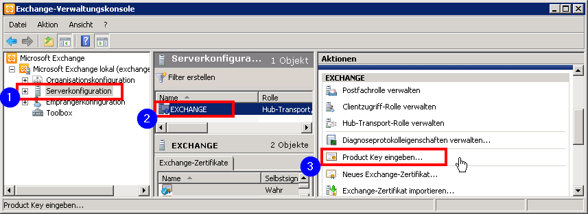 Geht im linken Bereich auf Serverkonfiguration, in der Mitte markiert den betroffenen Server und wählt dann Rechts Product Key eingeben...