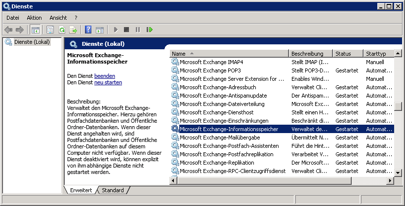 Nun müsst Ihr den Dienst für den Informationsspeicher noch einmal neu starten (siehe Schritt 2)