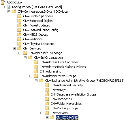 Beendet die Exchange-Verwaltungskonsole und öffnet auf einem Active Directory Domänencontroller den ADSI-Editor - zu finden unter Verwaltung