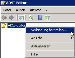 Geht oben rechts auf ADSI-Editor mit der rechten Maustaste und wählt Verbindung herstellen...