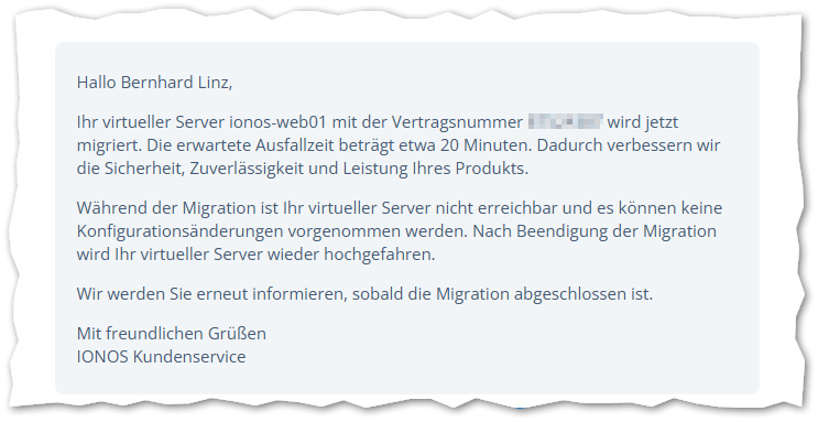 Heute seit 15:00 Uhr stellt IONOS meinen vServer um auf dem diese Webseite läuft. Das sollte angeblich nicht lange dauern.