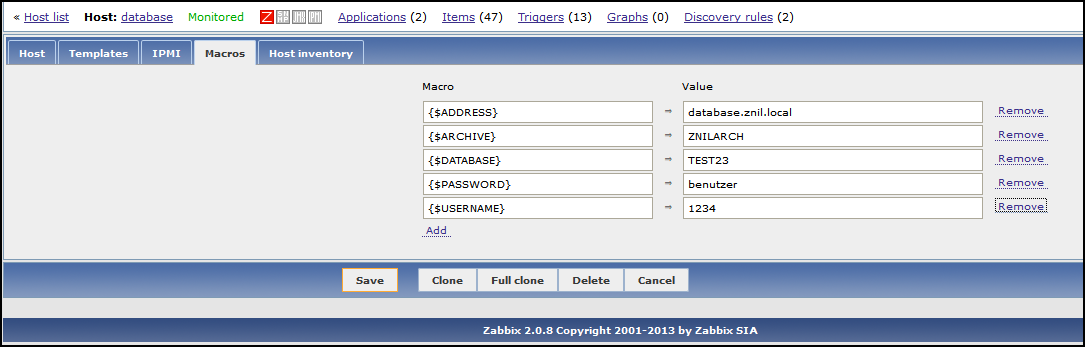 Nun noch das Template mit dem Host verknüpfen: