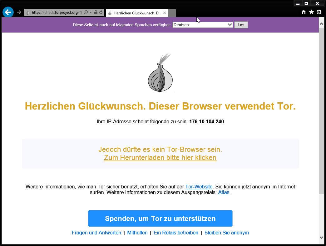 Alles Super! Wir surfen über Tor! Wenn auch mit einem unsicheren Browser ...