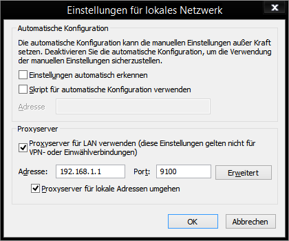 Und schon wieder ändern wir die Proxy-Einstellungen im Internet Explorer, diesmal auf den Port