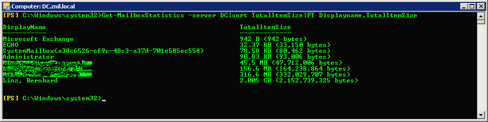 Postfachgrößen unter Exchange 2007 oder 2010 per PowerShell abfragen