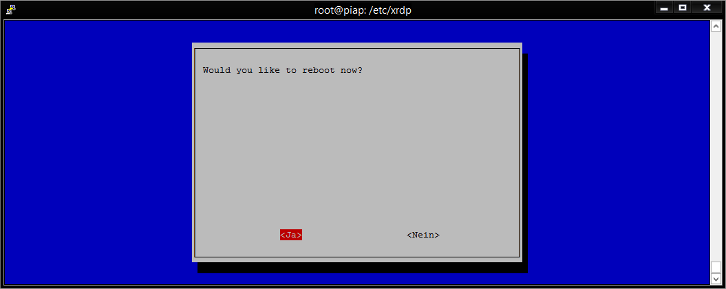Nach dem Neustart ist der Pi in die grafische Oberfläche hochgebootet (vermute ich mal, ich hab keinen Monitor dran *g*), nun Installieren wir den RDP-Server mit