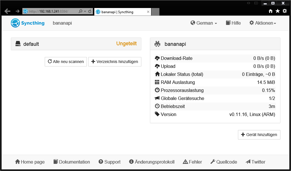 Nun könnt Ihr von einem anderem Rechner aus per Webbrowser auf die Weboberfläche zugreifen: