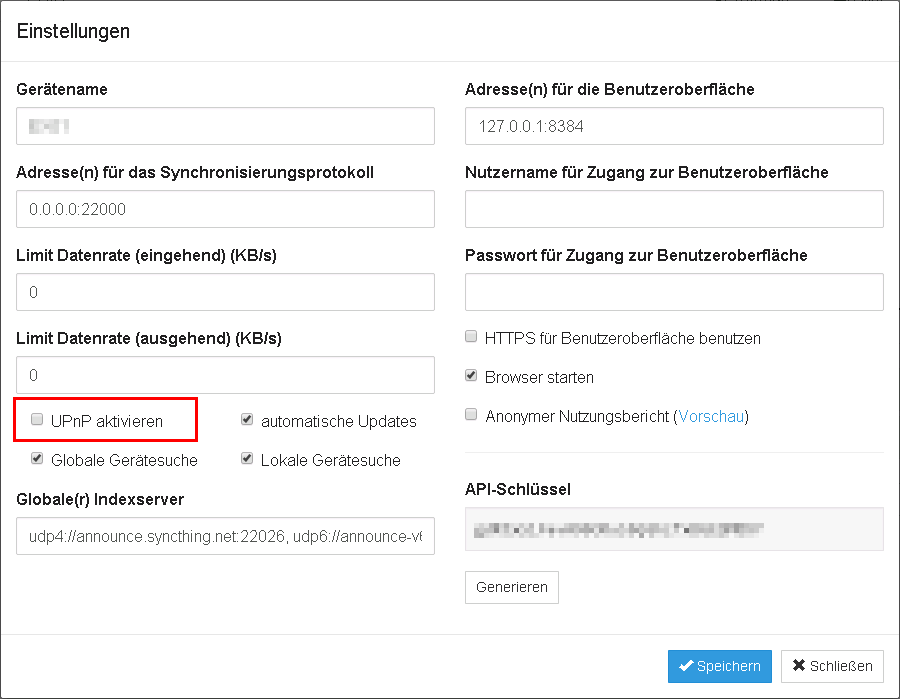 Unter Aktionen -> Einstellungen deaktiviert Ihr das UPnP: