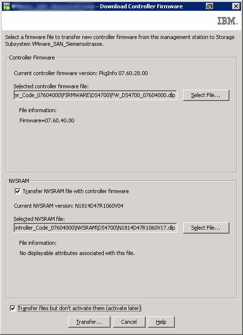 im mitteleren Bereich setzen wir den Haken bei "Transfer NVSRAM file with controller firmware" und wählen die Datei (Verzeichnis NVRAM),br