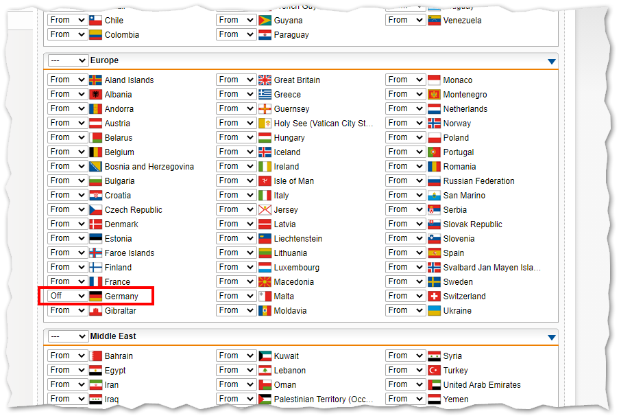 Ich habe in meinem Fall überall From eingestellt, außer für Deutschland: