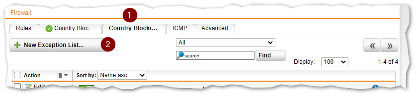 Dazu wechseln wir einen Reiter weiter zu Country Blocking Exceptions und auf den Button + New Exception List...