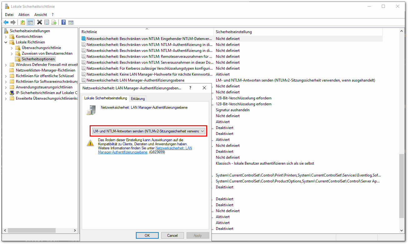 Nur NTLMv2-Antworten senden. LM & NTLM verweigern