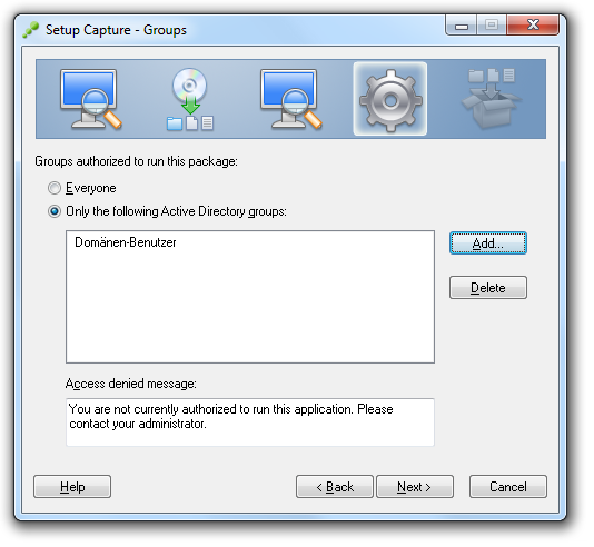 Werden eine oder mehrere Gruppen ausgewählt so lässt sich die Anednung später auch nur noch in dieser Domäne / diesen Domänen und von diesen Gruppen starten!