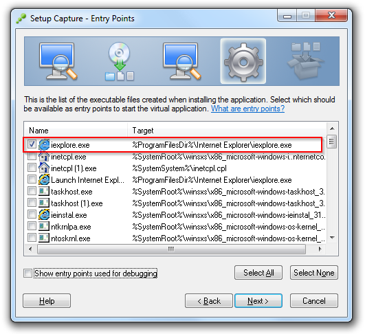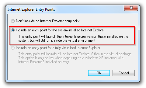 und wählen den 2. Optionspunkt "Include an entry point for the system-installed Internet Explorer":