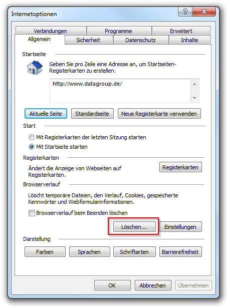 und im Anschluss untena auf Löschen und im Hauptdialog auf OK: