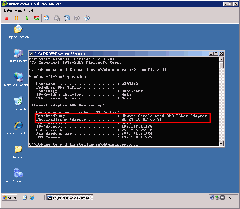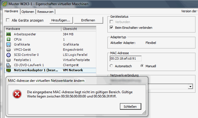 VMware:MAC Adresse einer VM frei waehlen oder MAC einer echten Netzwerkkarte eintragen