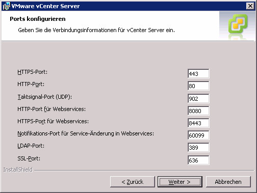 In den Voreinstellungen verwendet das vCenter 4.1 U1 folgende Ports: