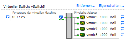 vswitchmüssen in einem einzigen Trunk / Ether-Channel/ Link-Aggregation sein! - . Und somit müssen die Netzkarten (