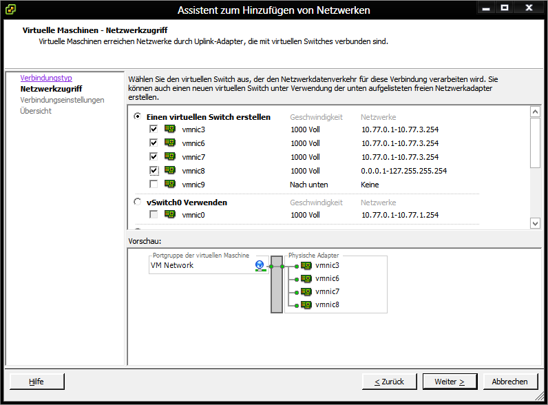 vswitch) erstellt werden - . alle Netzwerkarten an diesem