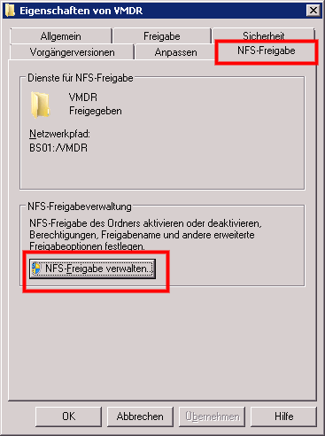 VMware:Windows Server 2008 R2 als NFS Ziel für ESX/ESXi konfigurieren