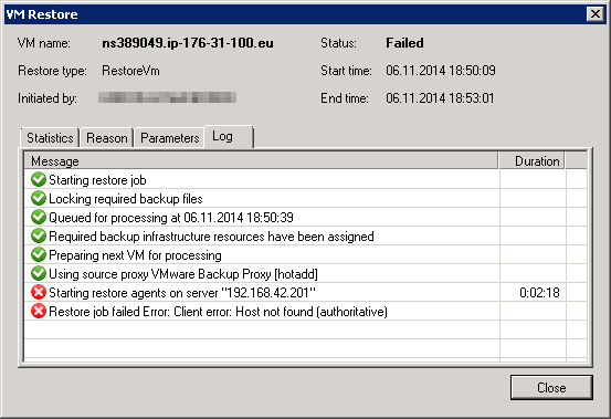 Veeam 7.0 Restore job failed Error Client error Host not found authoritative