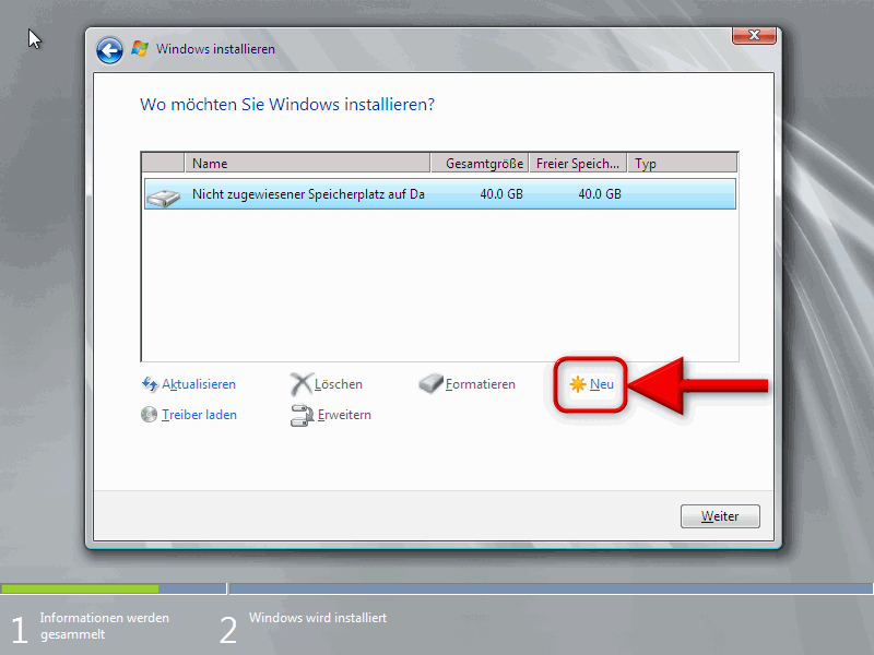 Klicken Sie auf "Laufwerksoptionen (erweitert)"