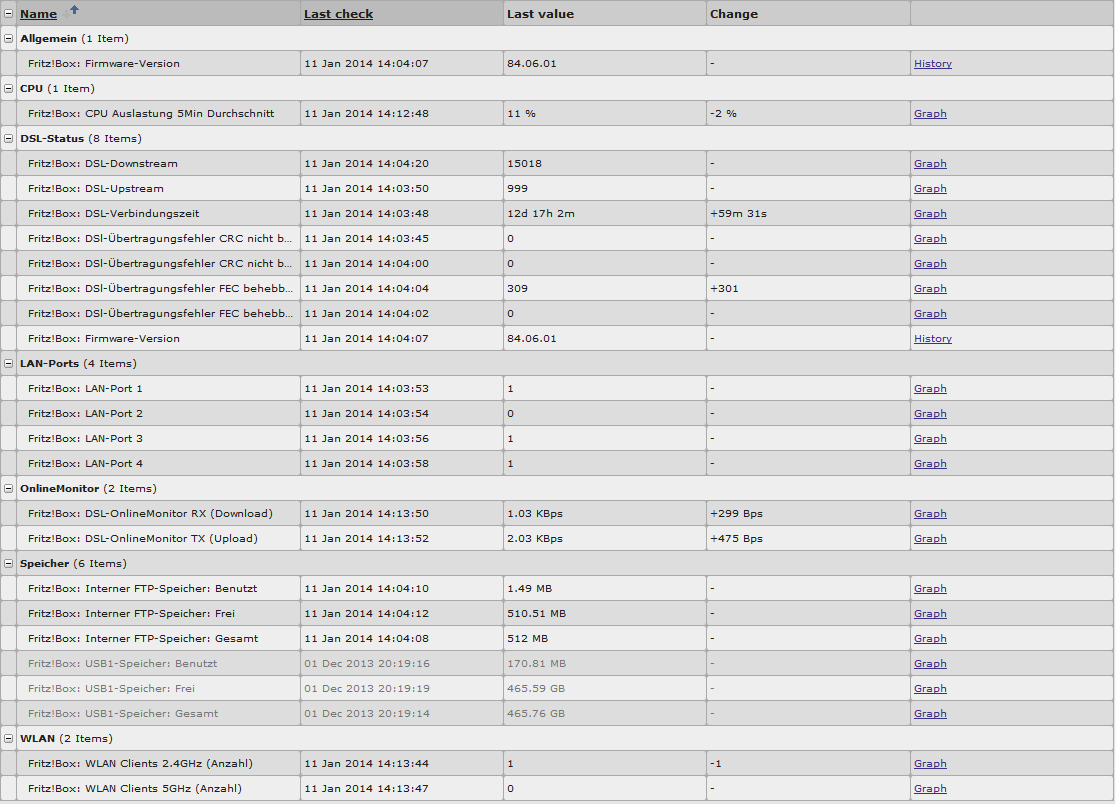 Siehe auch: FritzBox mit Zabbix überwachen HowTo mit Template