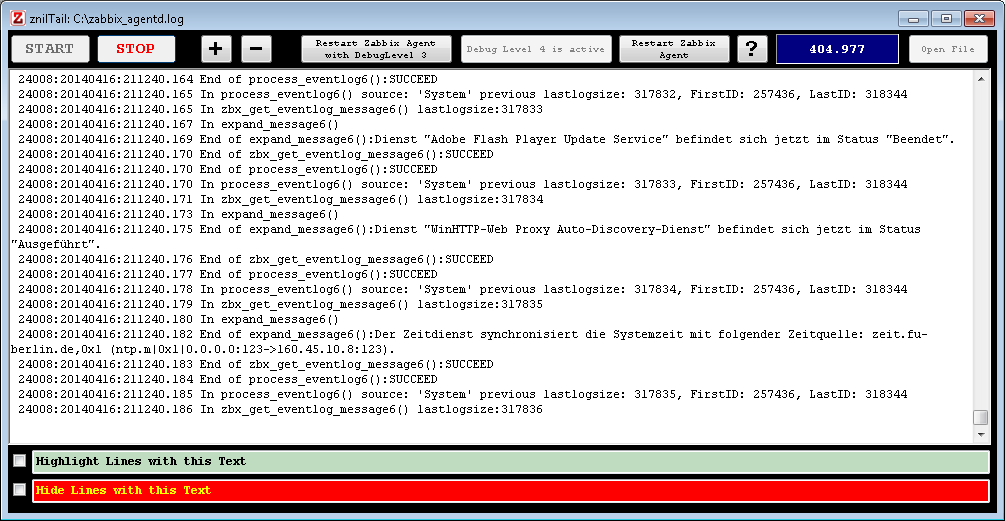 - Routine zum Einlesen des Log-Files überarbeitet, funktioniert jetzt auch während des Neustarts des Zabbix Agenten
