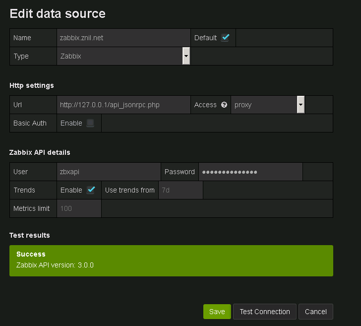 Zabbix kann nun als Datenquelle eingerichtet werden.