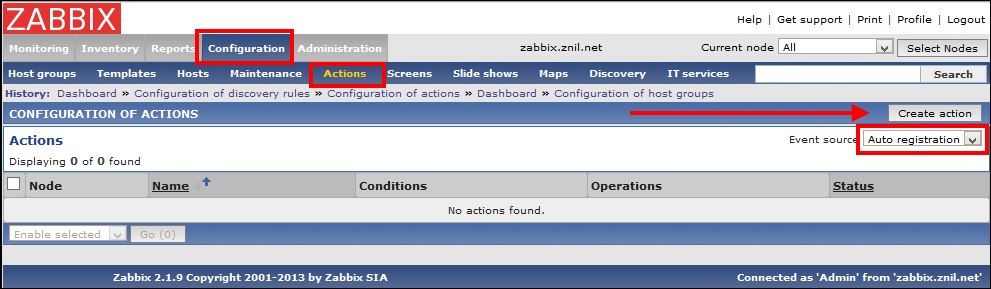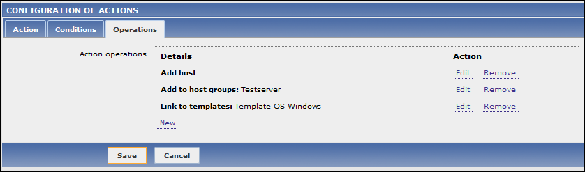 Hier fügen wir alle gewünschten Aktionen hinzu - wenn wir wollen bekommen wie auche eine Benachrichtung per Mail wenn ein neuer Host gefunden wurde.
