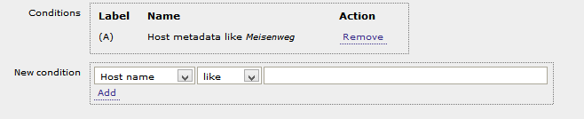 Auf dem Reiter Conditions Setzen wir die HostMetadata wie diese auch in der Agentenkonfiguration gesetzt wurde: