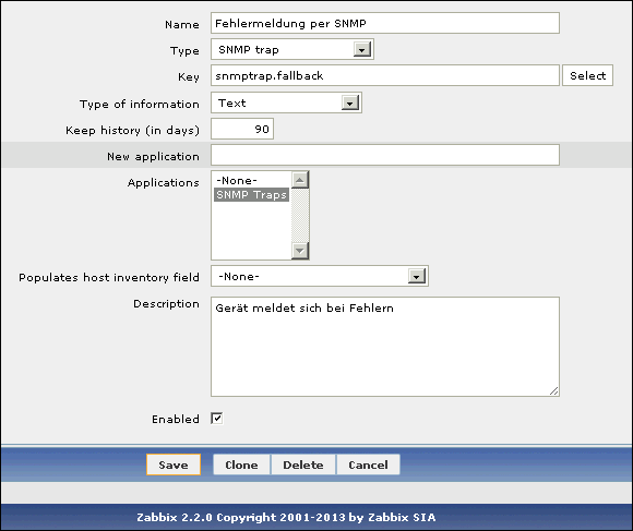 Nun habe ich mir deshalb die Anleitung von Zabbix dazu durchgelesen: https://www.zabbix.com/documentation/2.2/manual/config/items/itemtypes/snmptrap