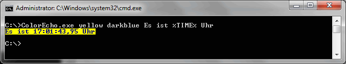 ColorEcho.exe yellow darkblue Es ist %TIME% Uhr